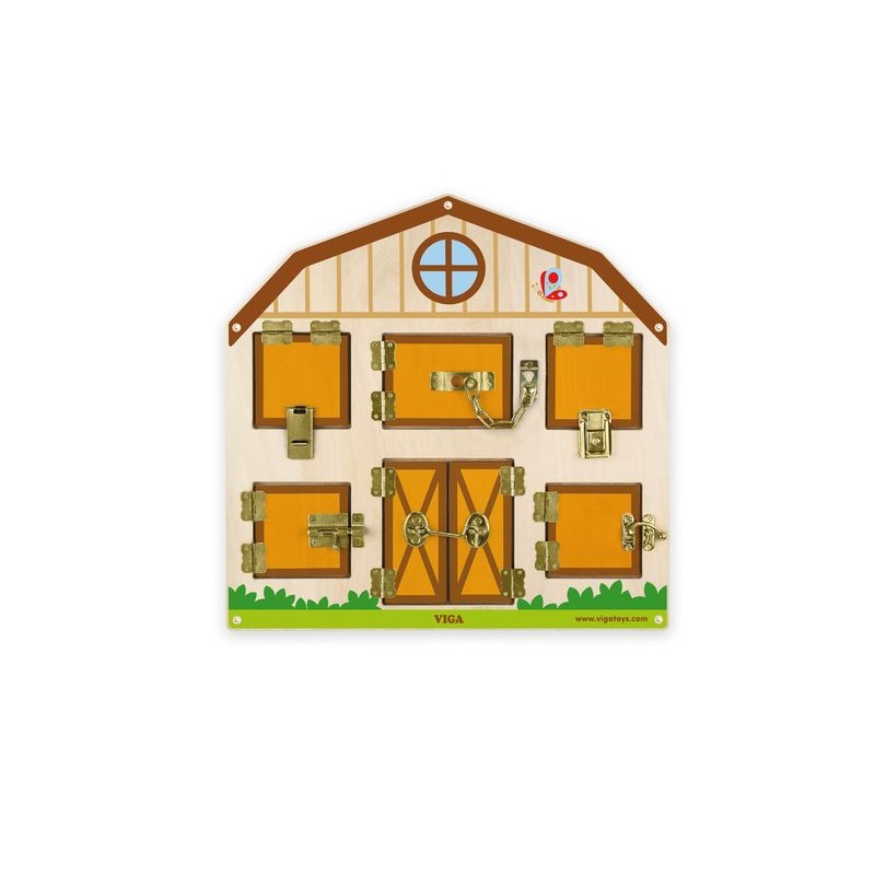 Jucaria are 9 usi cu balamale care inchid un hambar, si in spatele fiecareia dintre ele se afla fie un animal, fie alte unelte sau lucruri folositoare la o ferma.